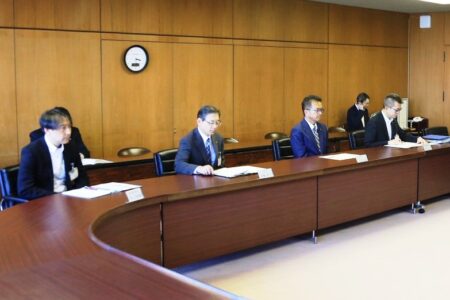 鶴井運営専務副会長、田中参与、樋口総務委員長、山川総務担当副会長、久保広報委員長が同席しました。