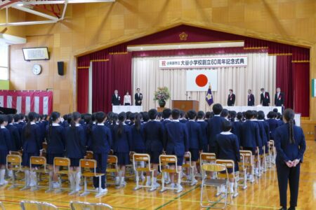小矢部市P連 小矢部市立大谷小学校 創立60周年記念式典(10月11日) 2025/10/19 戻る 10月11日 大谷小学校の創立60周年記念式典が行われました。 昨年のPTA役員の方々が記念式典の実行委員として、ご尽力された式典に、市長をはじめ、たくさんの来賓が御出席されました。 その後行われた学習発表会でも、生徒たちの発表では、小矢部市の良いところをテーマにした発表があり、大変盛り上がりました。 また、別の日では記念演奏会も開催され、生徒たちの演奏だけでなく、和太鼓奏者もゲストとして招き、盛大に開催されました。