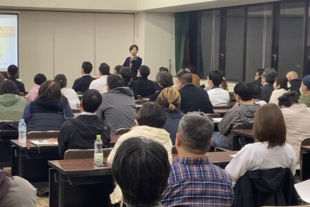 講師は水野美紀氏(リーダーキッズ認定講師・ファミリーコーチング認定講師)に務めていただき、会員約120名が参加して、子どもたちとの接し方、イライラしてしまうときでも子どもたちを受け止めるための考え方の切り替えの工夫などを学びました。子ども自身の可能性を信じて寄り添うことや、自分自身が明るく生き生きと活動する姿を見せることの大切さなど、講師自身の経験を交えた具体的なお話をいただきました。