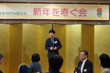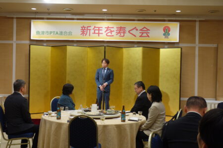 魚津市P連 新年を寿ぐ会(1月9日) 2026/01/29 戻る 1月9日(金)、「新年を寿ぐ会」を開催しました。 来賓の方々含め約30名の方に参加していただき、今後のPTA活動について楽しく語り合いました。